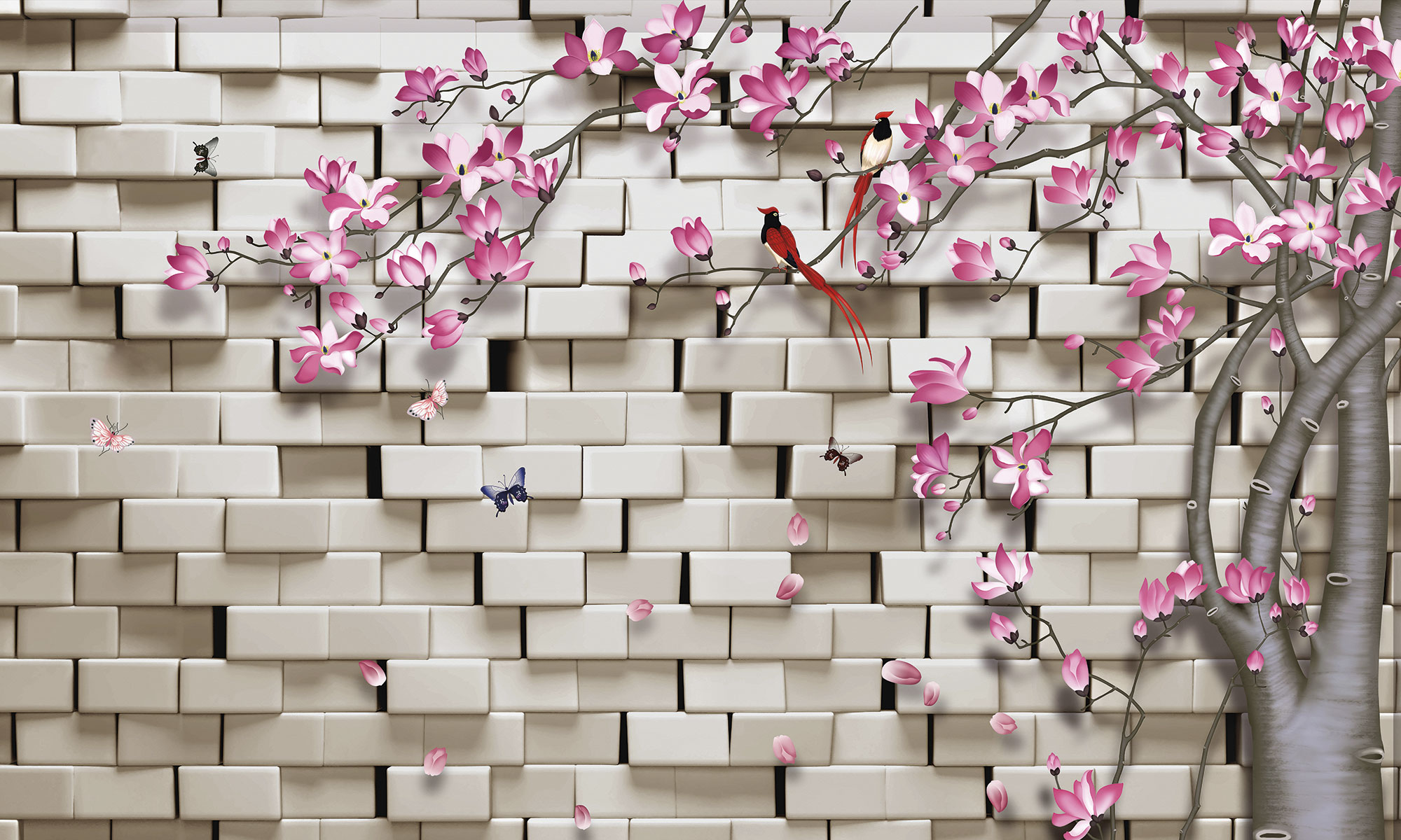 Дерево и кирпичная стена