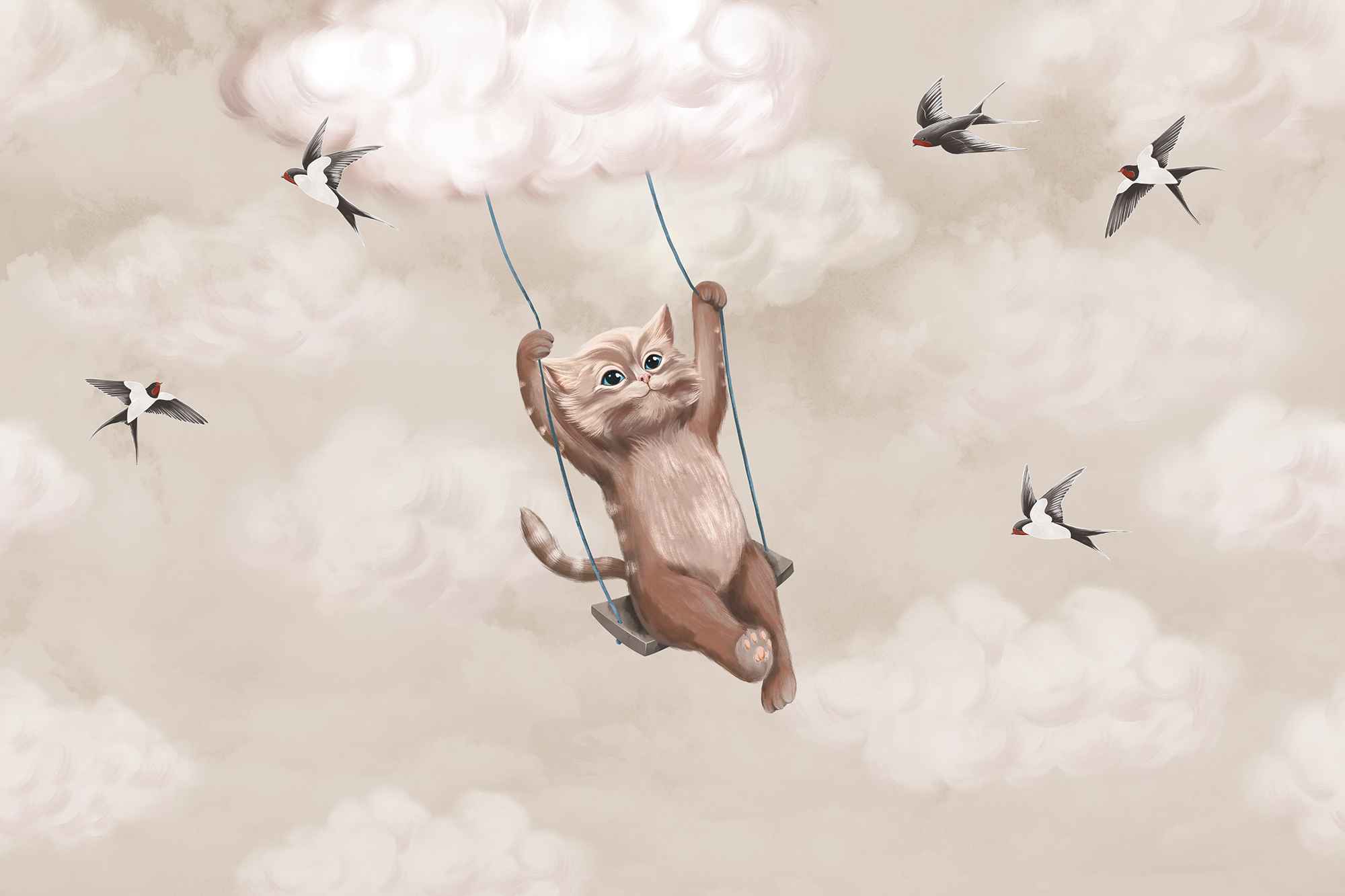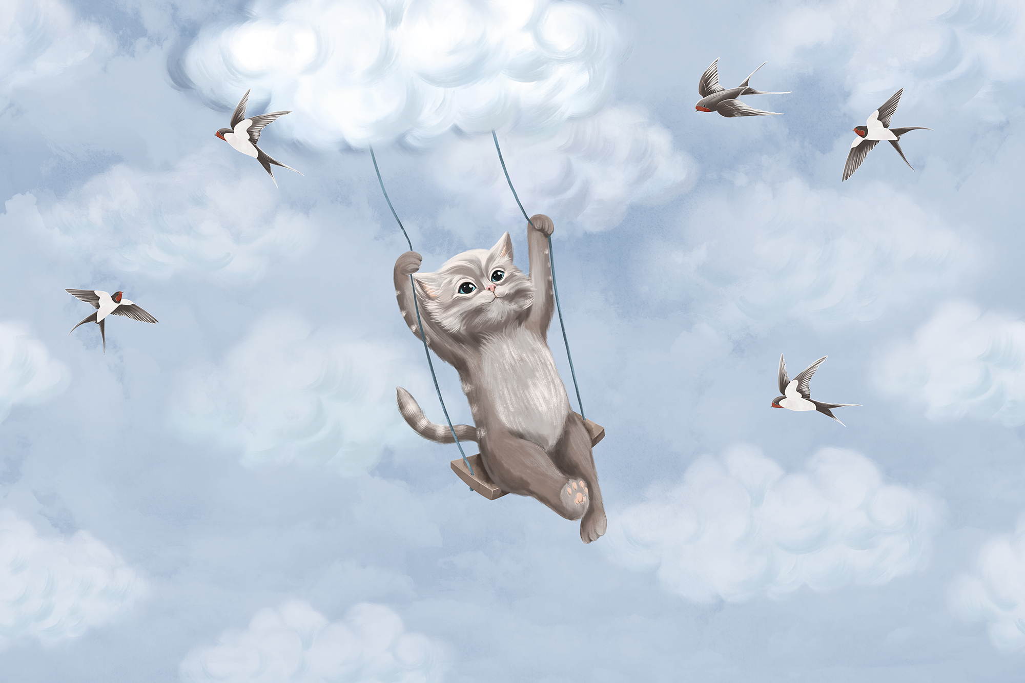 Котик на качелях
