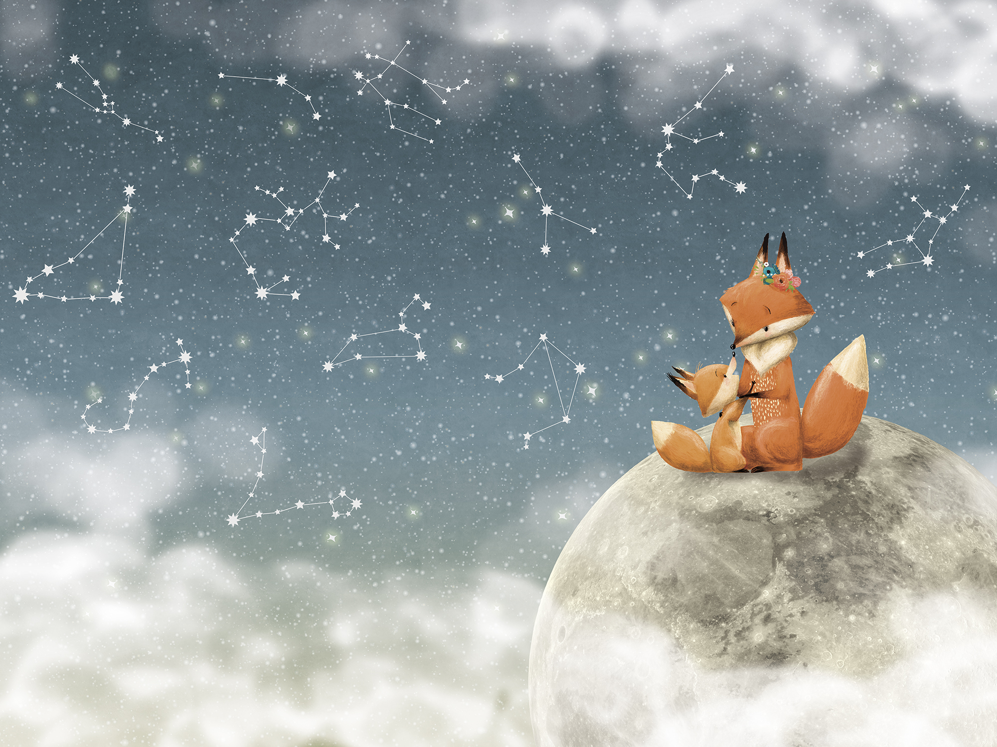 Лисята на фоне звездного неба