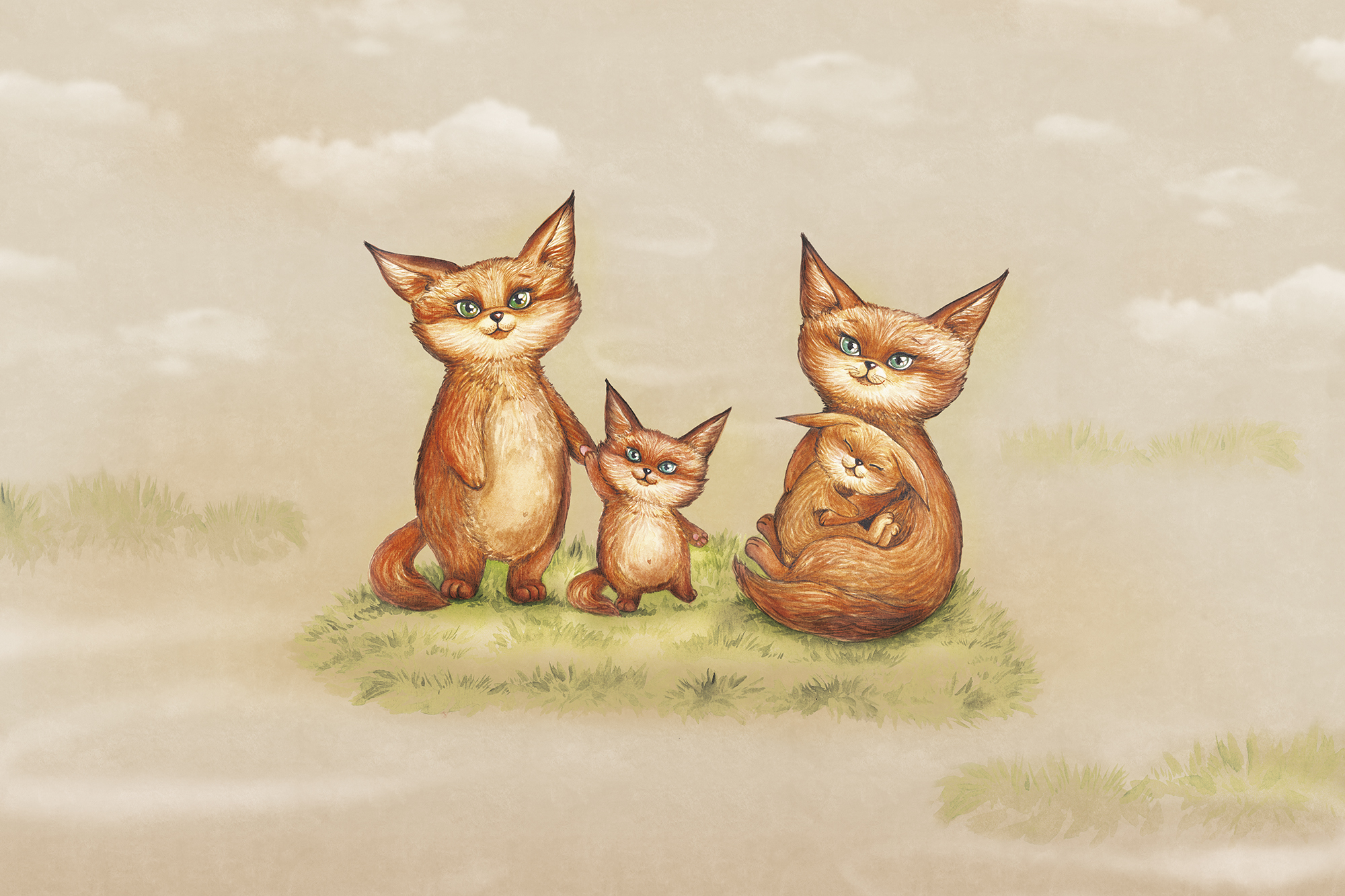 Лисята на голубом фоне